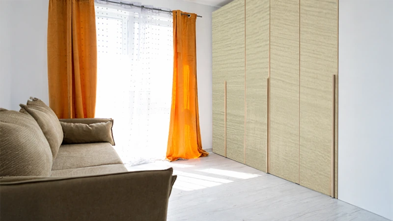 Laminate fabrics resemble materials such as linen or silk, and it softens the look of the wardrobes. These are suitable laminates in case of a bedroom wardrobe laminate design, where you want to consider comfort and a little elegance. It appears perfectly in line with upholstered furniture and brings a relaxed atmosphere.