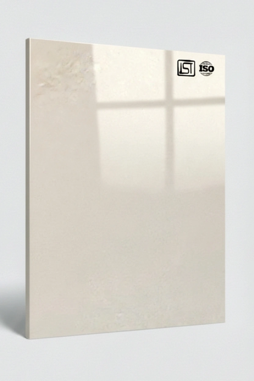 Luxurious vanilla white decorative acrylic laminate in a high gloss finish, perfect for modern interiors.