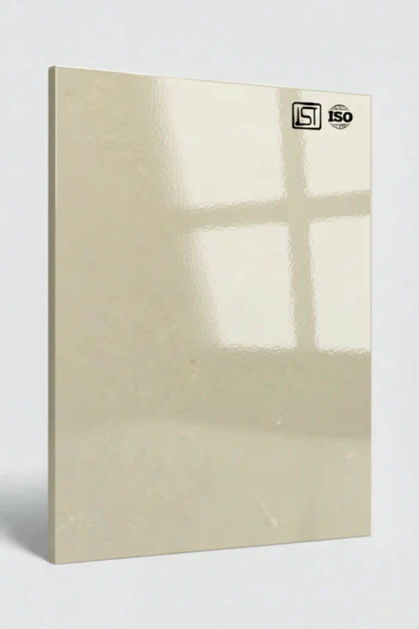 Luxurious cream white decorative acrylic laminate in a high gloss finish, perfect for modern interiors.