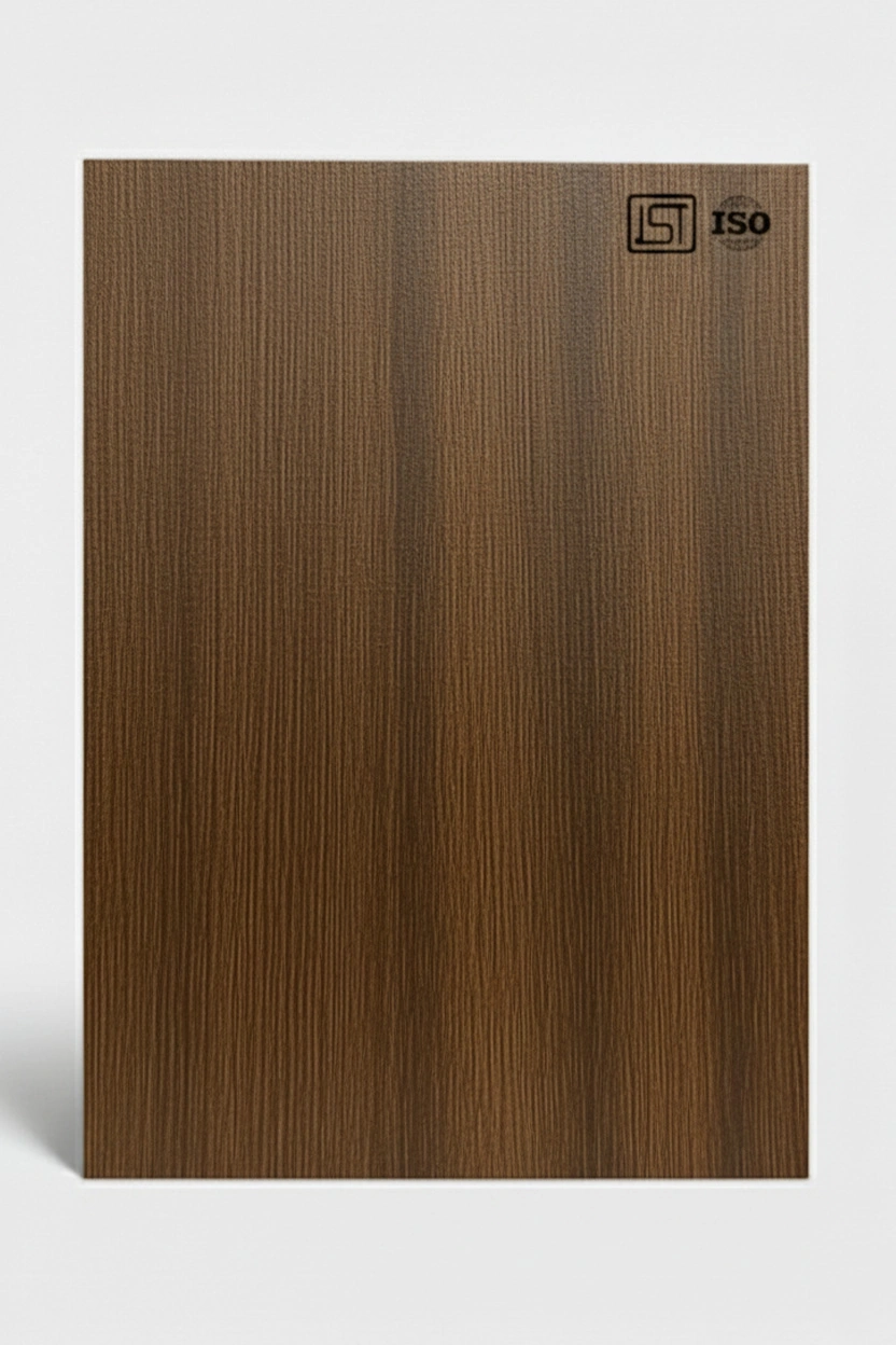 Elegant walnut brown laminate featuring a natural wooden texture and a silky matt finish perfect for modern interiors.
