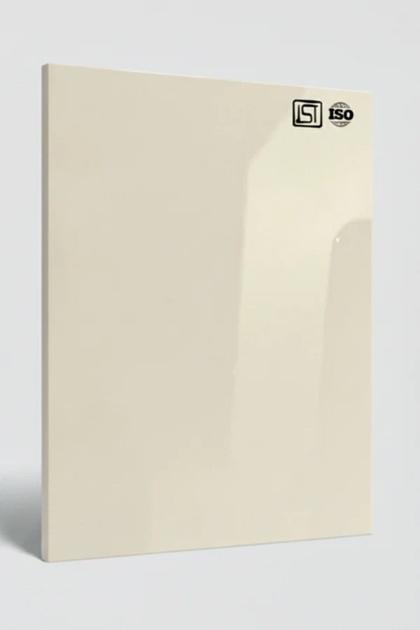 Luxurious cream white decorative acrylic laminate in a high gloss finish, perfect for modern interiors.