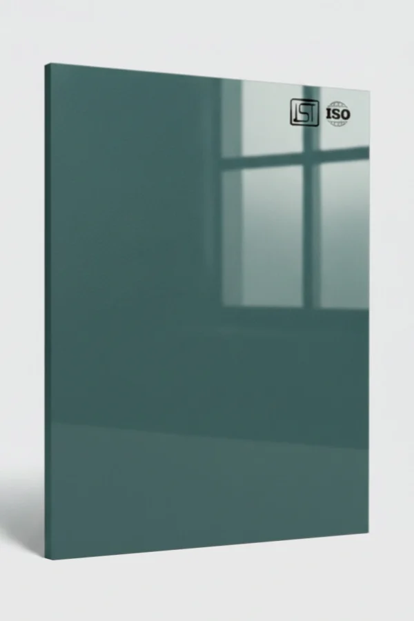 Luxurious dark aqua blue decorative acrylic laminate in a high gloss finish, perfect for modern interiors.