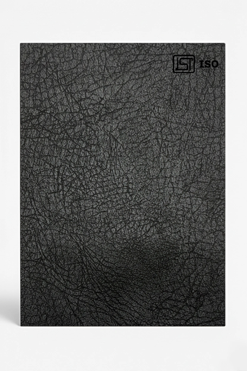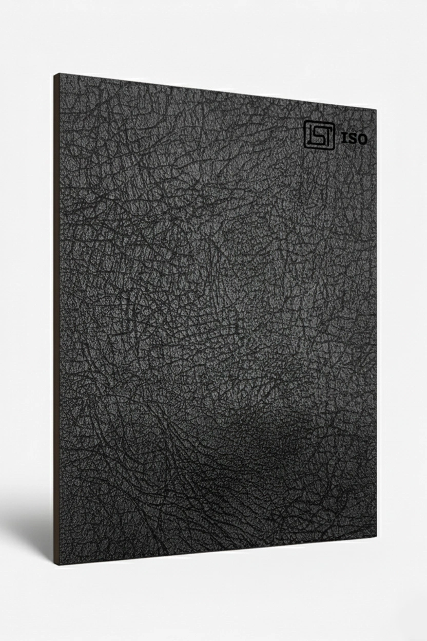 Luxurious stone grey colored decorative laminate featuring leather texture in matt finish, perfect for modern interiors.