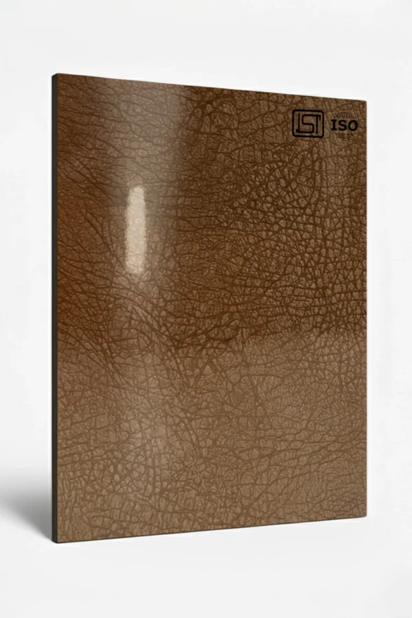 1029 SG| Bestowed Leather, Walnut Brown High Gloss Finish Leather Decorative Laminate