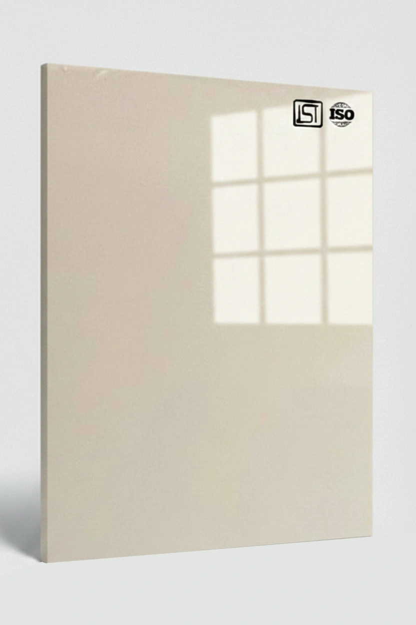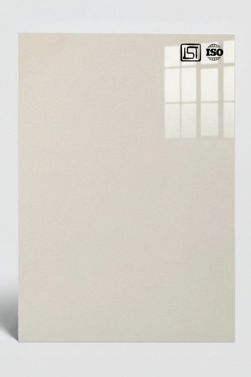 Luxurious Ivory White decorative acrylic laminate featuring smooth solid color texture and a high gloss finish, perfect for modern interiors.