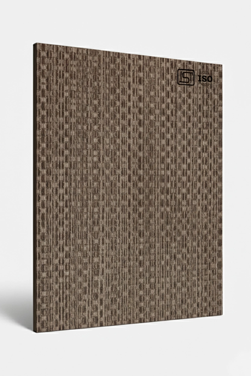 Luxurious armour taupe colored decorative laminate featuring fabric texture with subtle weaved design in matt finish, perfect for modern interiors.