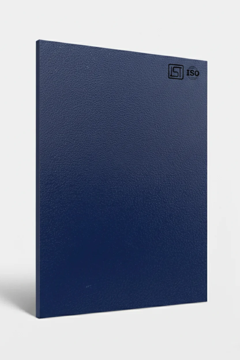 Luxurious navy blue colored decorative laminate in suede finish, perfect for modern interiors.