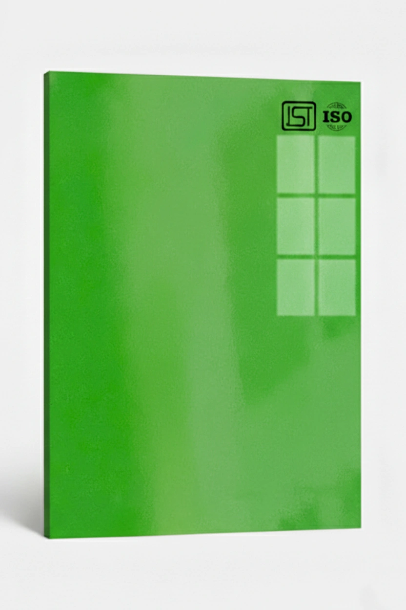 Elegant kelly green, smooth textured decorative laminate with High Gloss finish perfect for modern interiors.