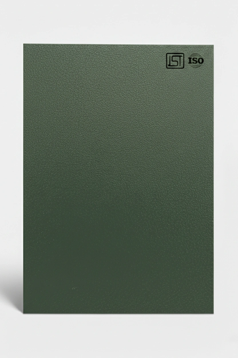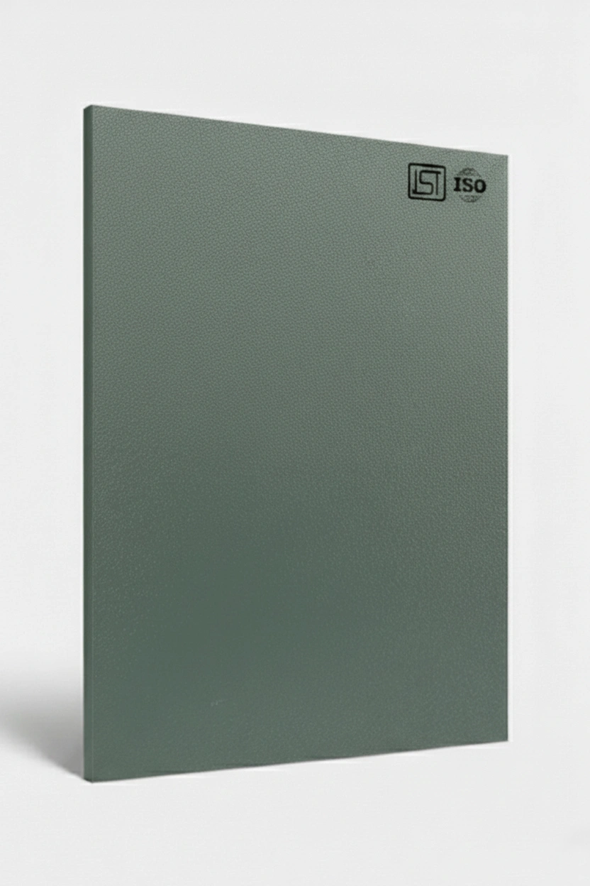 Elegant Moss Green Grey color smooth textured decorative laminate with silky matt finish perfect for modern interiors.