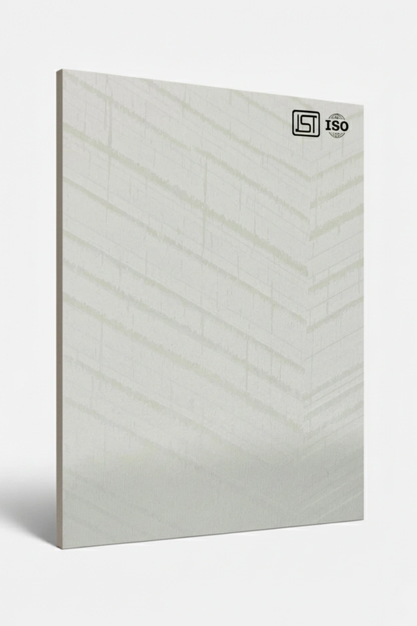 Elegant off-white decorative laminate featuring woodgrain texture with linear patterned design in a smooth matt finish for a refined, modern interior look.