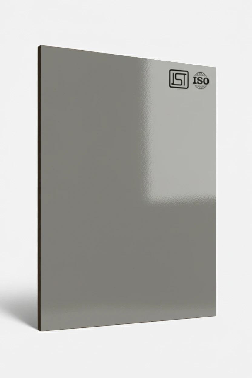 Elegant graphite slate smooth textured decorative laminate with high gloss finish perfect for modern interiors.