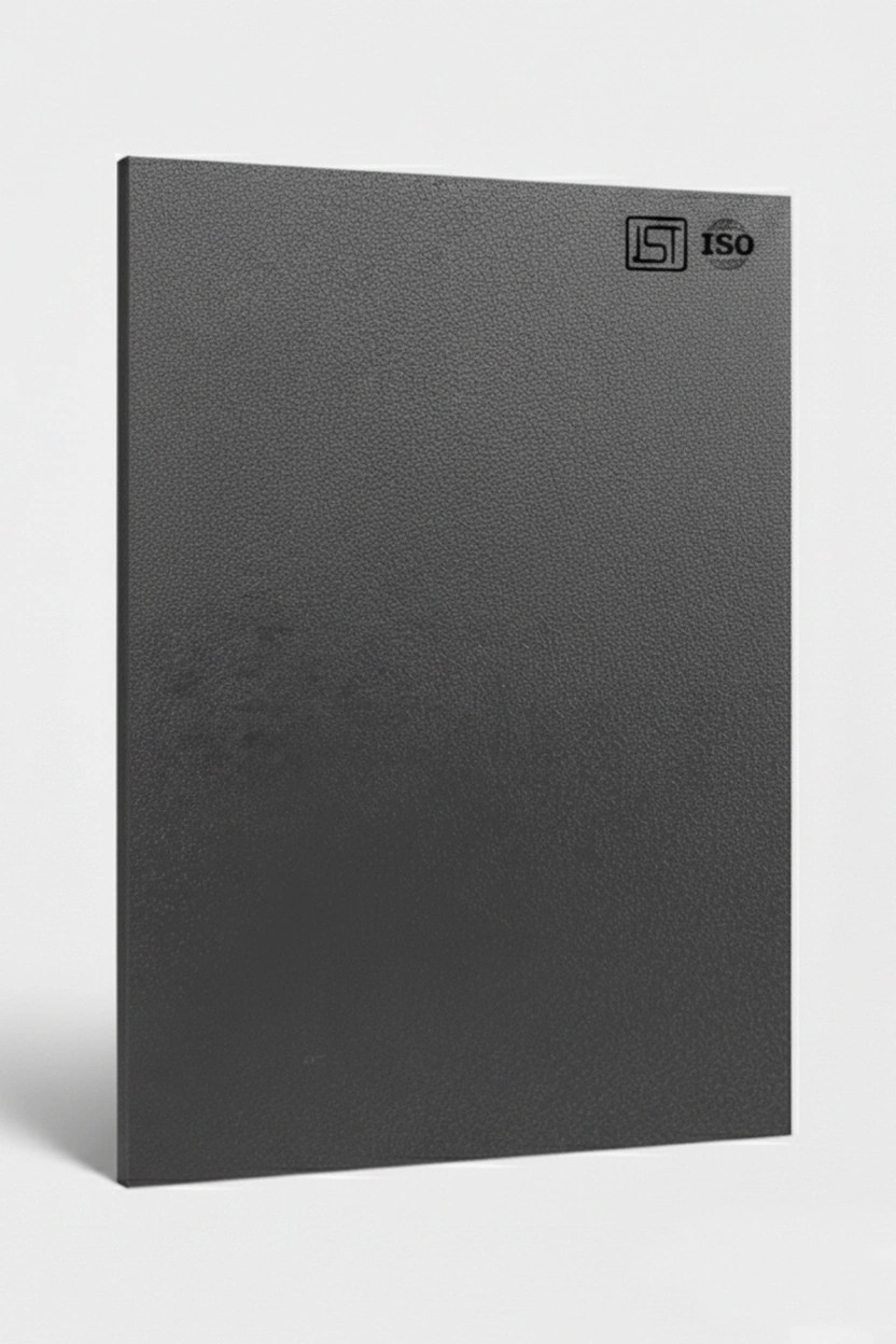 Elegant charcoal grey smooth textured decorative laminate with silky matt finish perfect for modern interiors.