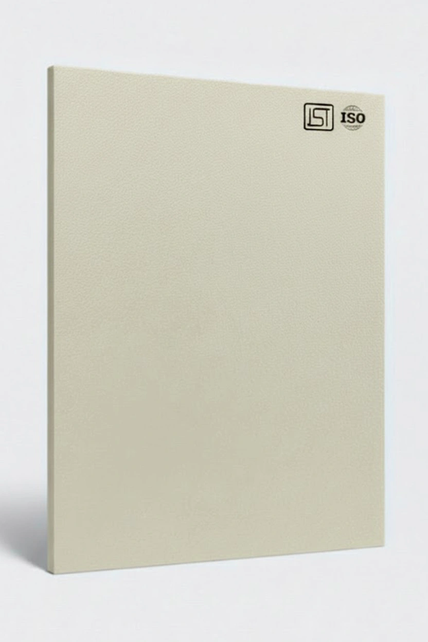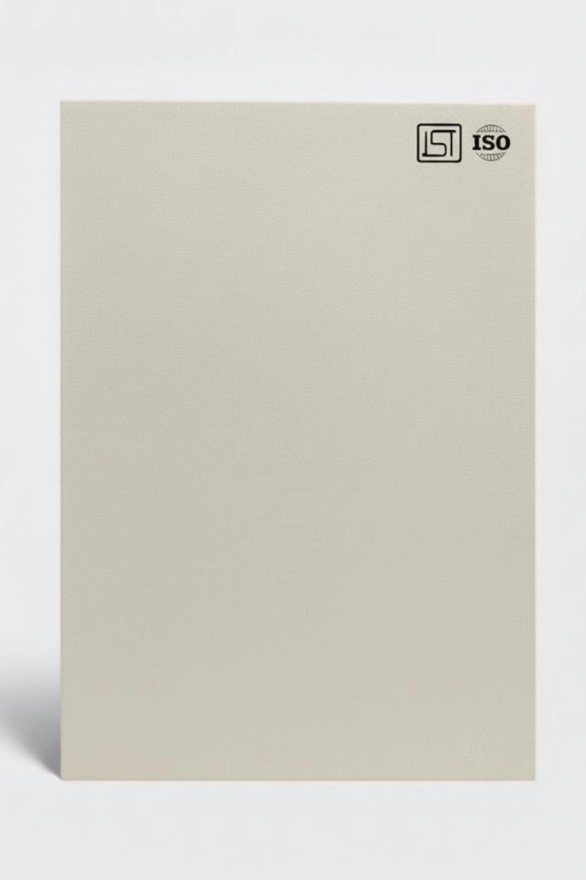 Luxurious off-white decorative laminate featuring smooth solid color texture and a silky matt finish, perfect for modern interiors.