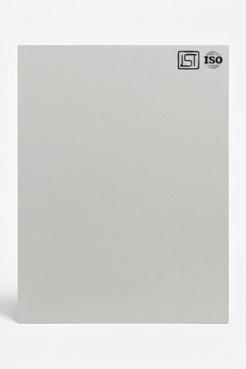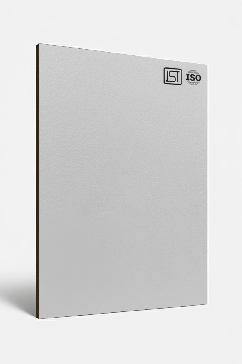Luxurious pearl white colored decorative laminate in suede finish, perfect for modern interiors.