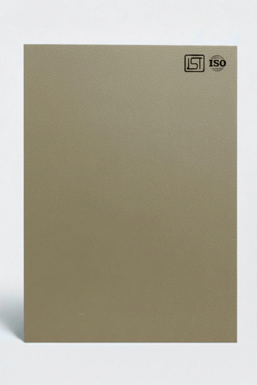 Elegant camel brown colored decorative laminate featuring fluted texture and matt finish, perfect for luxurious interiors.