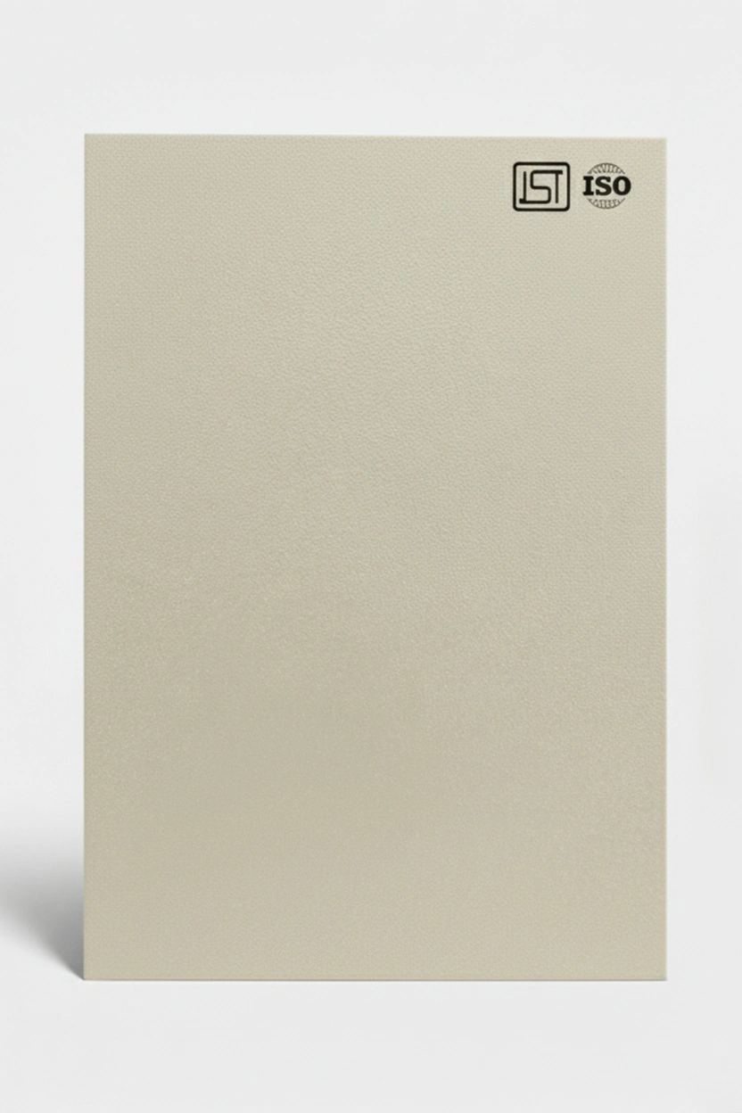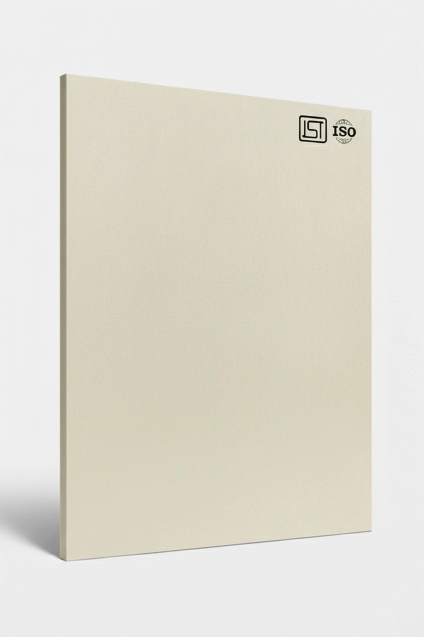 Luxurious cream white colored decorative laminate in suede finish, perfect for modern interiors.