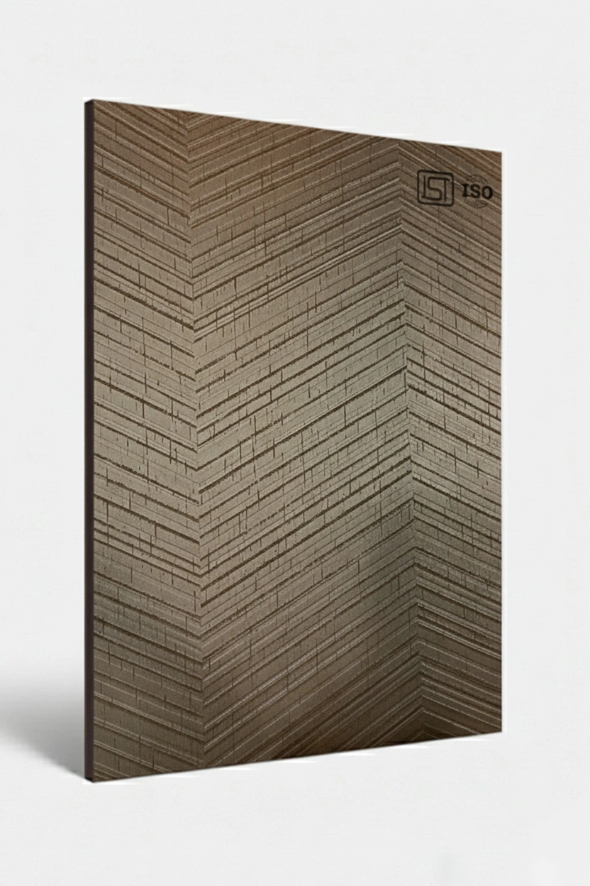 Elegant dark walnut brown decorative laminate featuring a fine wooden texture with linear design in matt finish, adding urbanity to modern interiors.