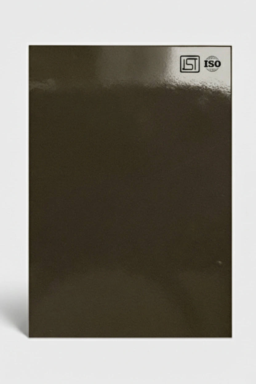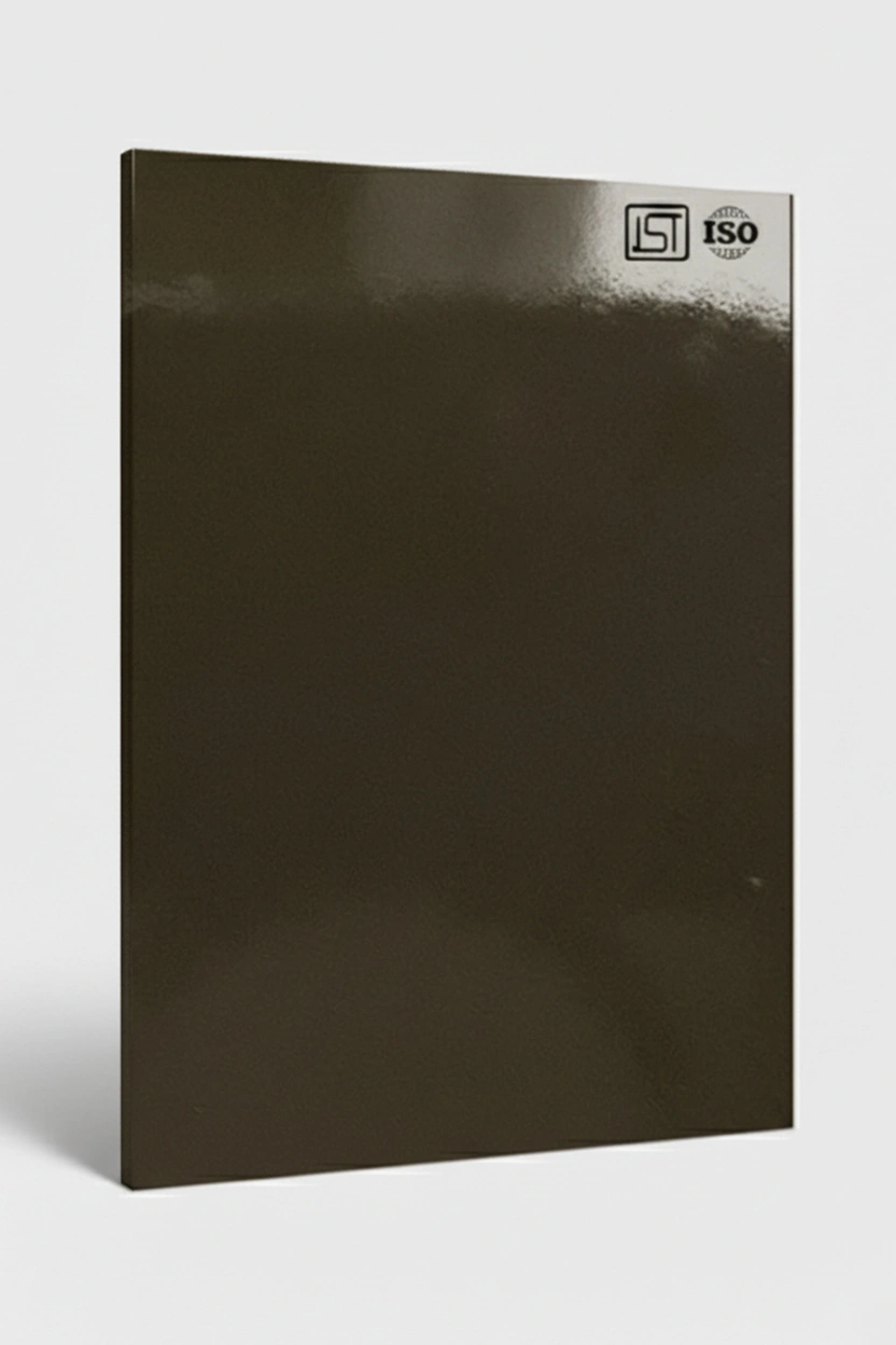 Elegant mocha brown smooth textured decorative laminate with High Gloss finish perfect for modern interiors.