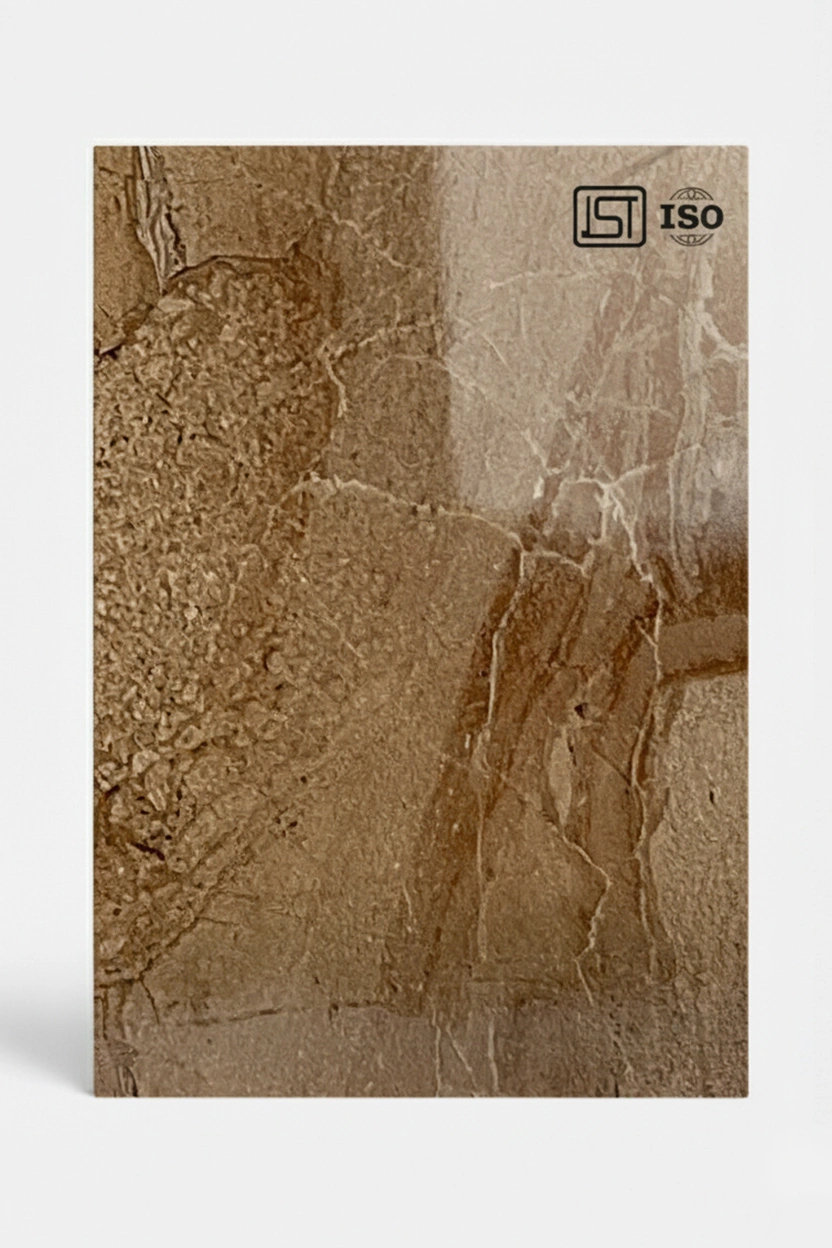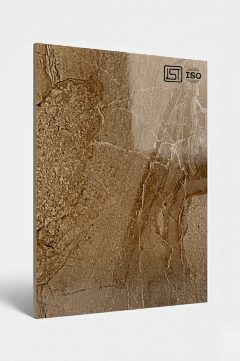 Bring warmth to interiors with weathered ginger decorative laminate featuring a natural marble texture, subtle earthy brown tones, and a smooth glossy finish for perfect elegance.