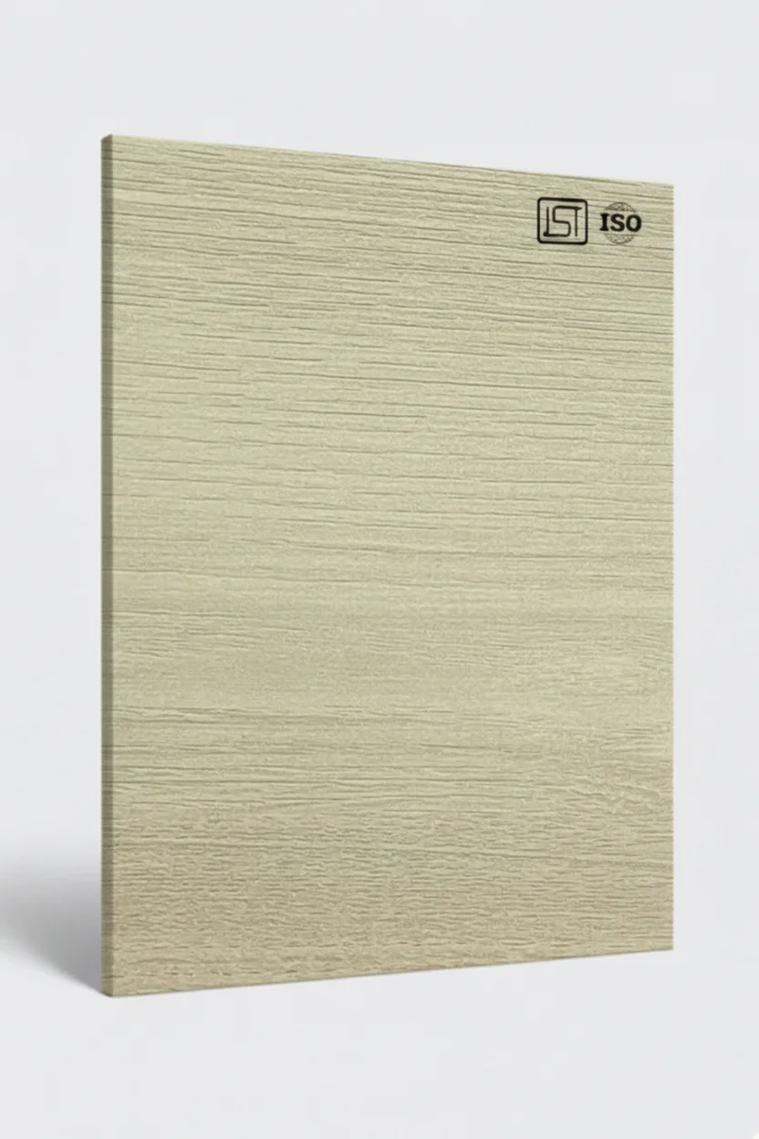 Elegant oof-white oak colored decorative laminate featuring fine woodgrain texture in suede finish, perfect for modern interiors.