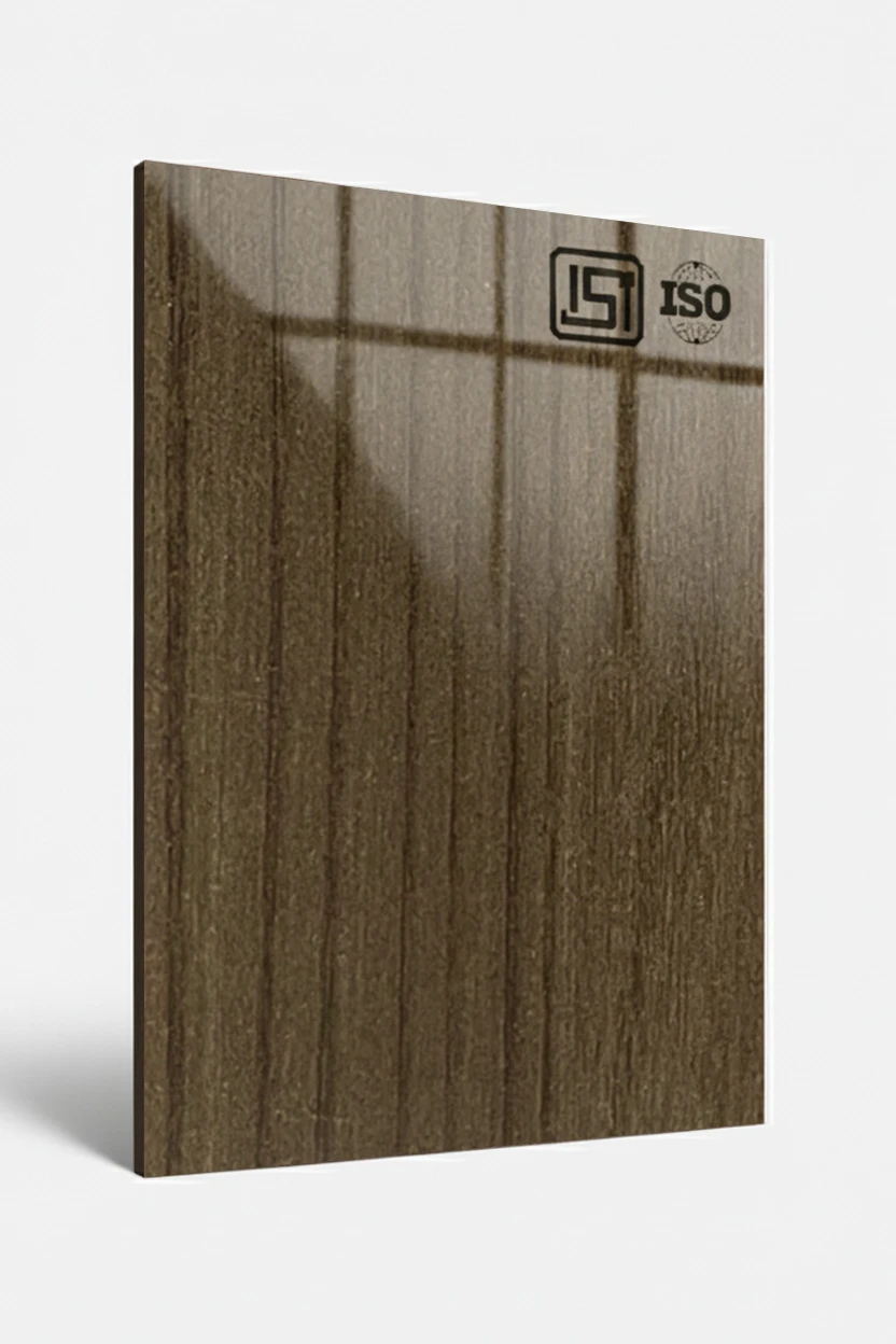 Luxurious american walnut decorative laminate featuring natural woodgrain texture in high gloss finish, perfect for premium interiors.