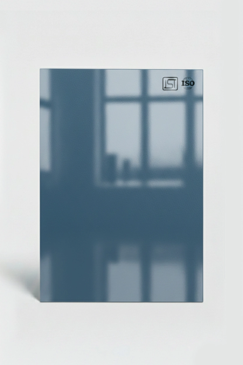 Elegant light blue colored decorative laminate in a high-gloss finish, perfect for modern interiors.