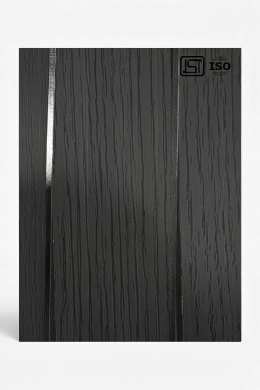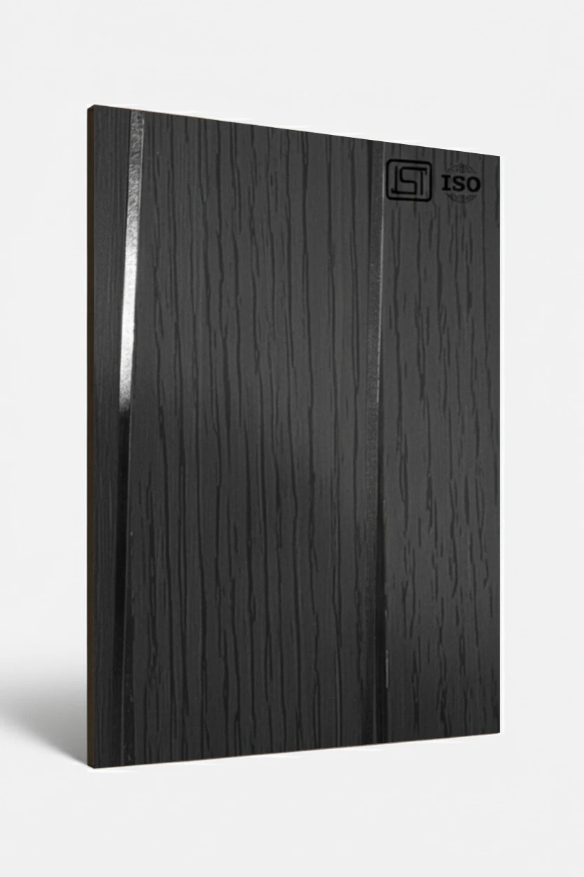Elegant wenge black, natural wood with shiny stripes textured decorative laminate with matt finish perfect for modern interiors.
