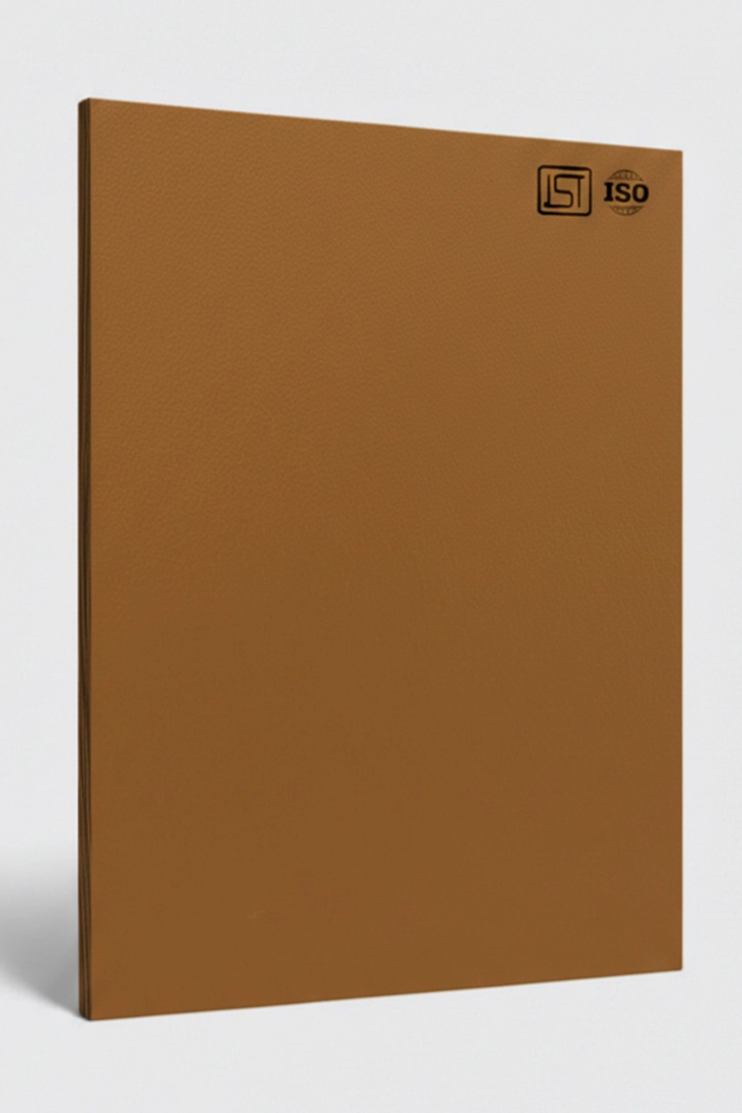 Elegant brown colored decorative laminate in suede finish, perfect for modern interiors.