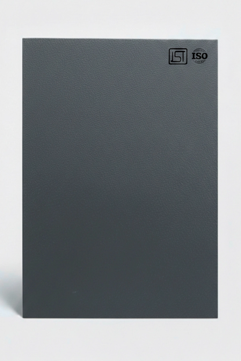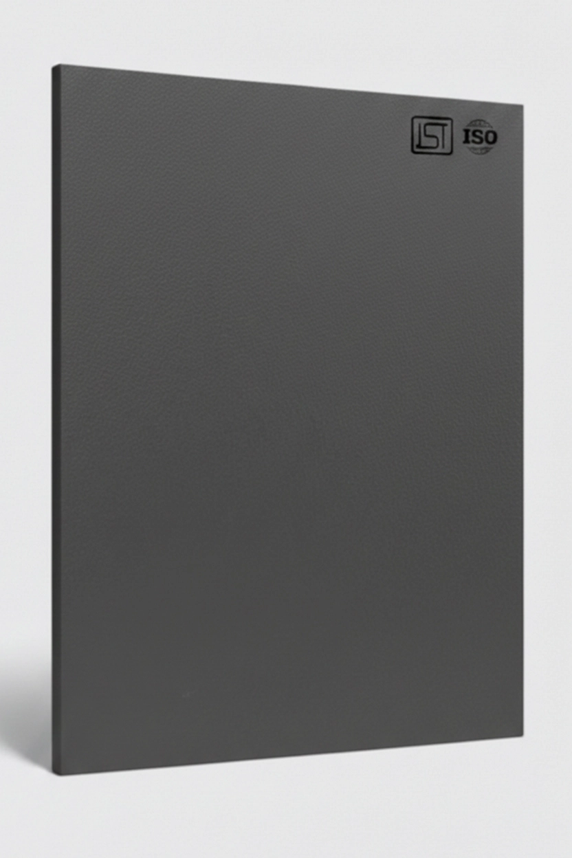 Elegant dark grey colored decorative laminate in suede finish, perfect for modern interiors.