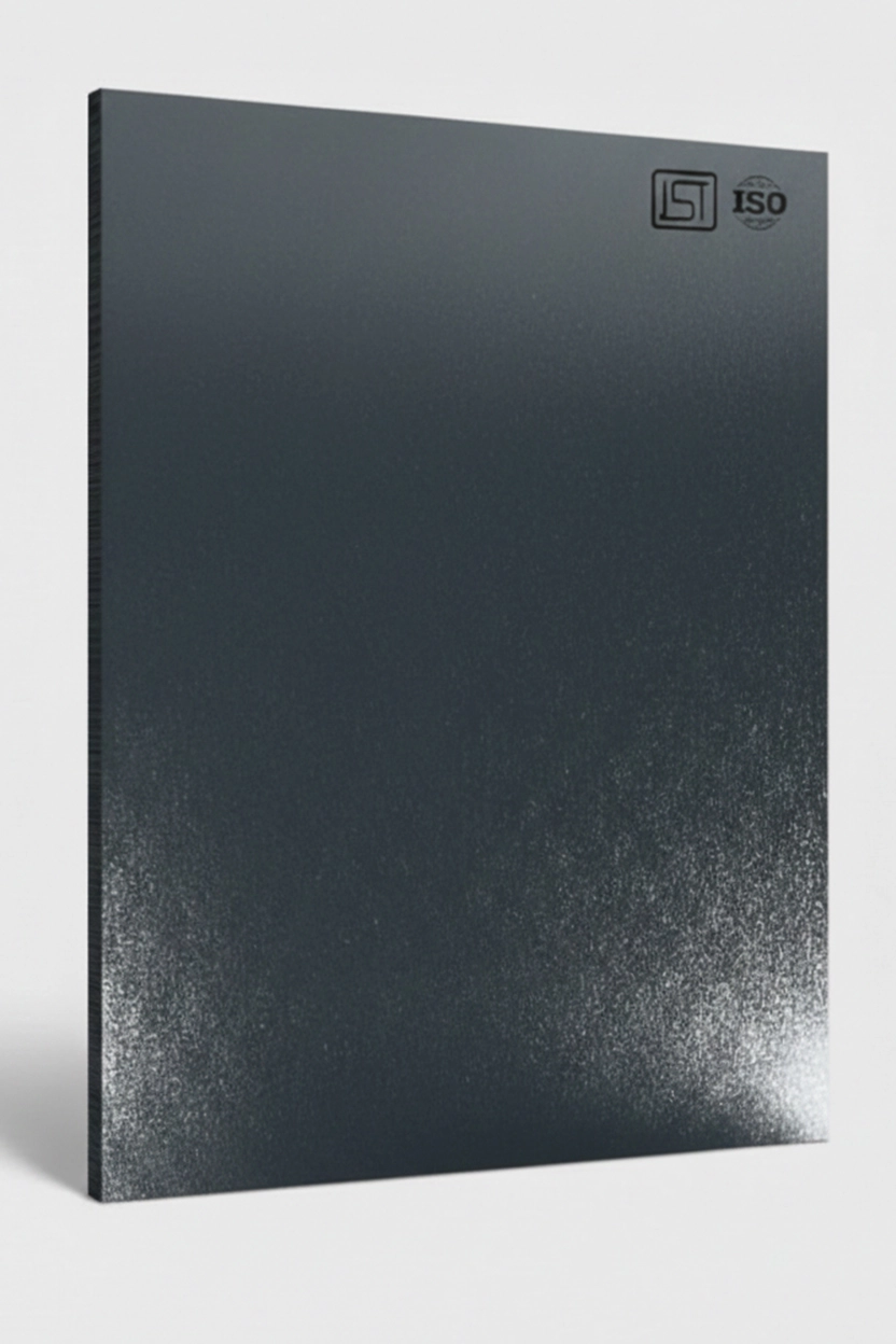 Elegant dark grey colored decorative laminate in a high-gloss finish, perfect for modern interiors.