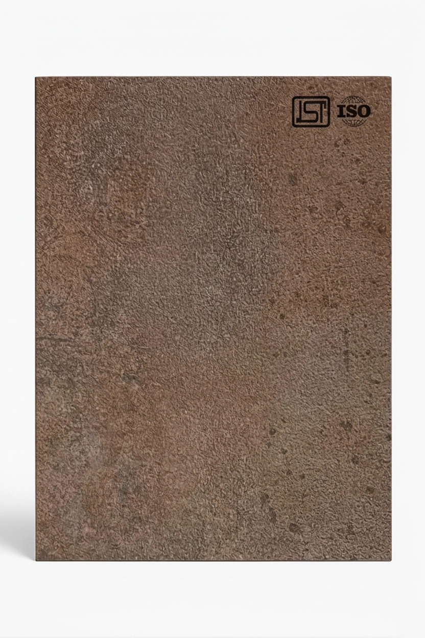 Luxurious rust brown colored decorative laminate featuring rust texture in matt finish, perfect for modern interiors.