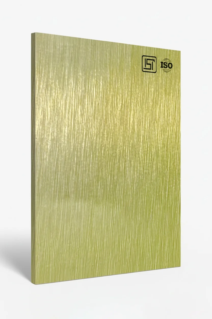 Elegant light golden olive decorative laminate featuring foil texture in matt finish, perfect for modern interiors.