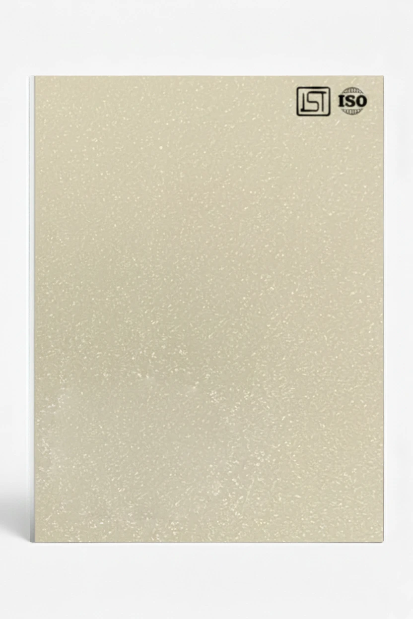 Elegant Cream colored laminate with shimmer texture and high gloss finish, perfect for modern interiors.