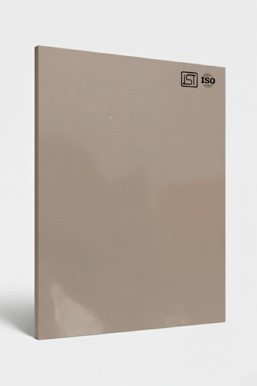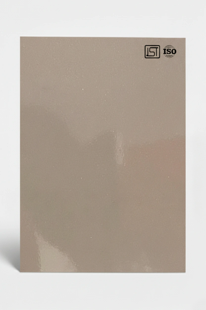 Elegant Mocha Taupe colored laminate with smooth metallic shimmer texture and high gloss finish perfect for modern interiors.