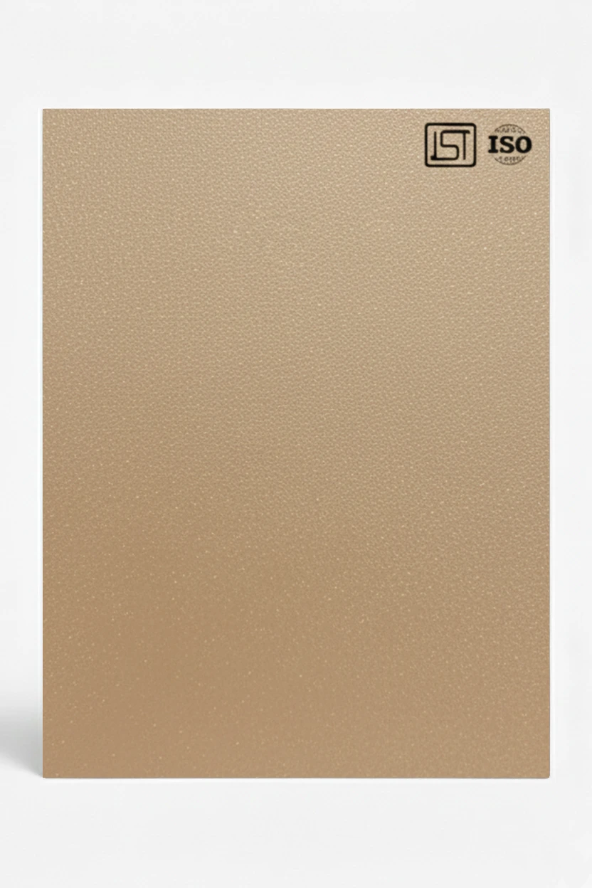 Elegant golden colored decorative laminate featuring shimmer texture and matte finish, perfect for luxurious interiors.