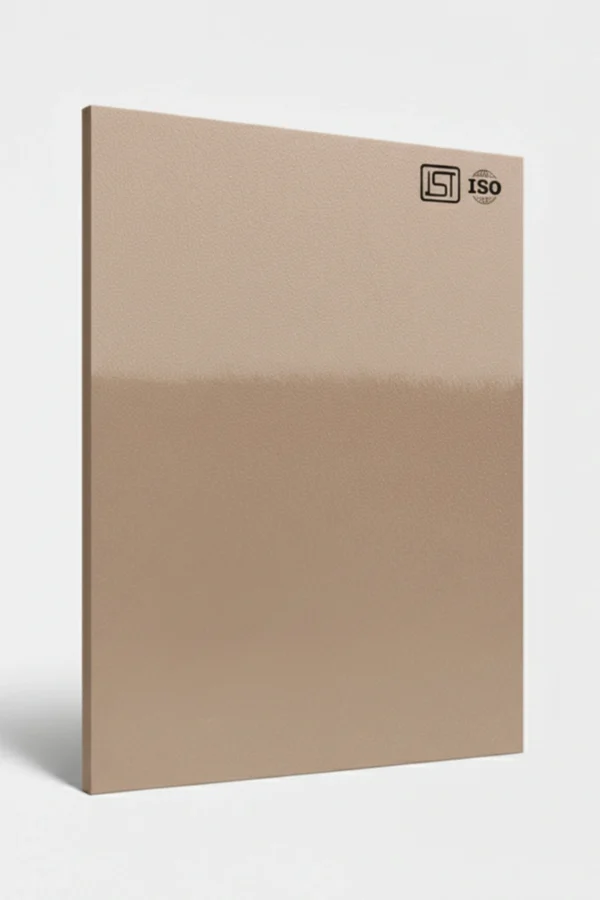 Explore laminate sheets in a desert sand brown high gloss finish with metallic texture for adding a soft and luminous touch to interiors.