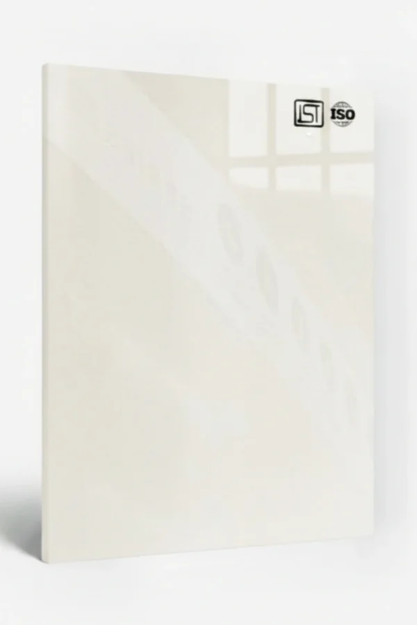 Luxurious off-White decorative acrylic laminate featuring a smooth, sparkly metallic texture and a high gloss finish, perfect for modern interiors.