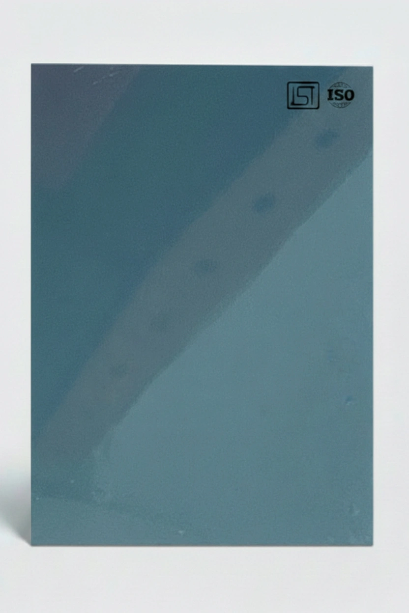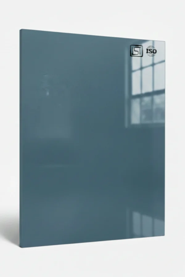 Luxurious teal blue decorative acrylic laminate in a metallic high gloss finish, perfect for modern interiors.