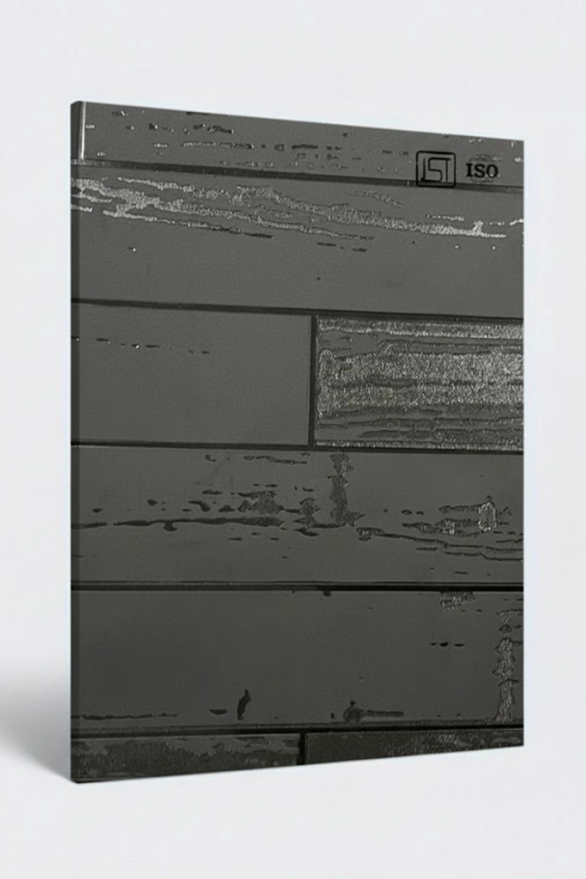 Luxurious dark wenge brown colored decorative laminate with smooth shiny wooden 3D wall grooves texture and shiny matt finish, perfect for modern interiors.