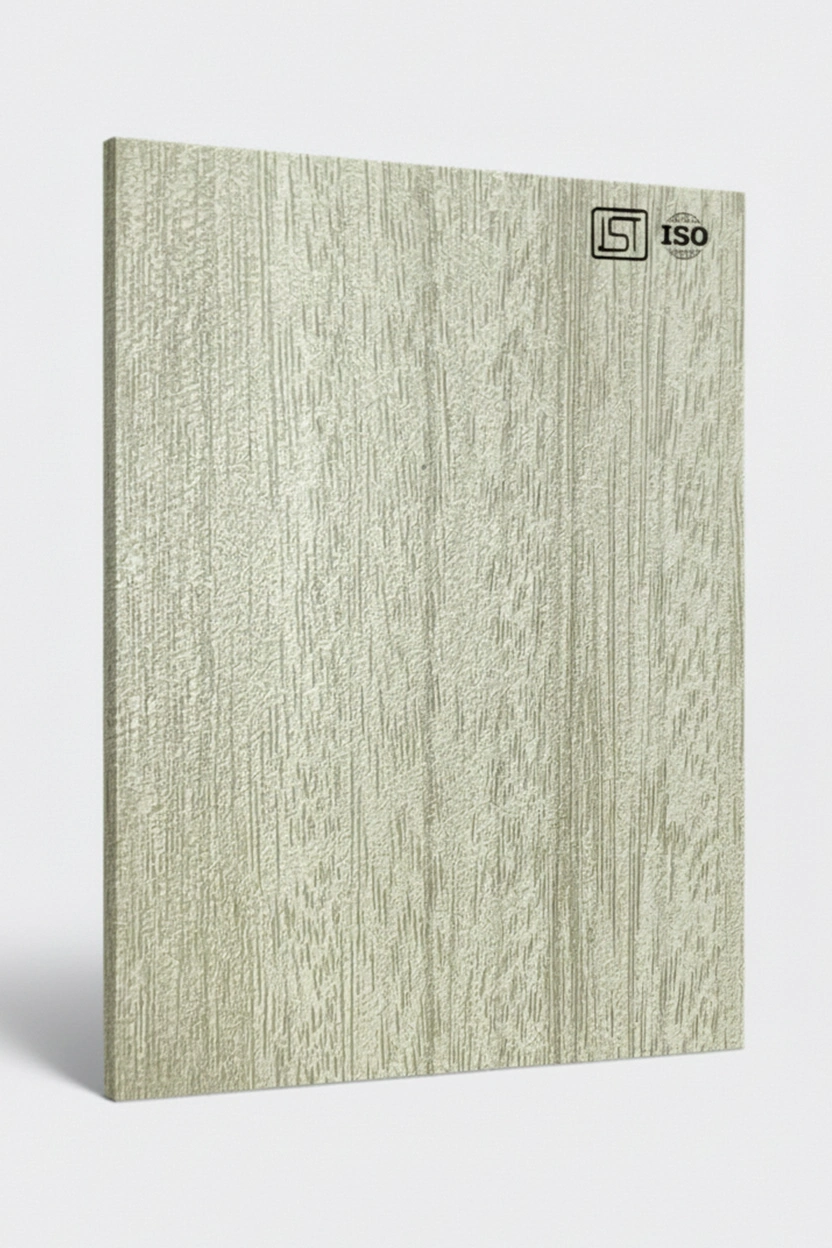 Luxurious natural light teak decorative laminate featuring woodgrain texture and a suede finish, perfect for modern interiors.