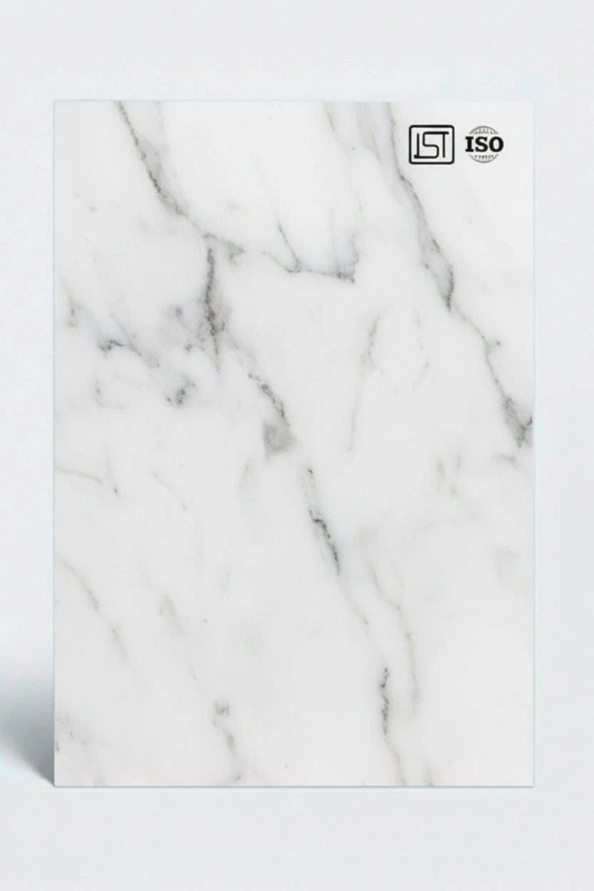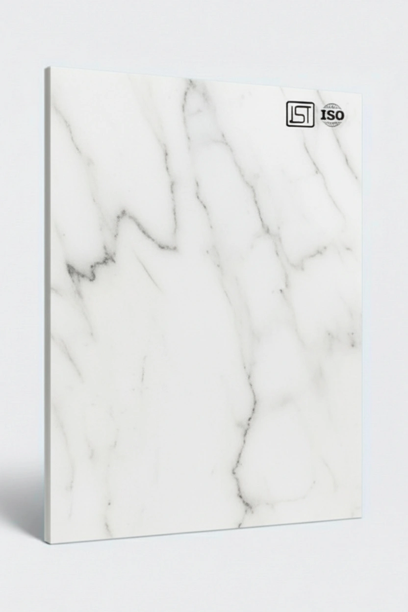 Elegant prestine white colored decorative laminate featuring fluted texture and matt finish, perfect for luxurious interiors.