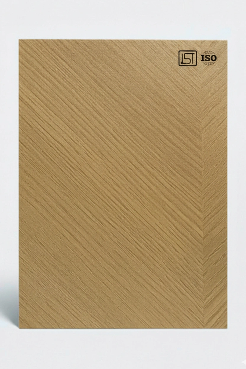 Luxurious light honey oak decorative laminate featuring abstract wooden texture and a silky matt finish, perfect for modern interiors.