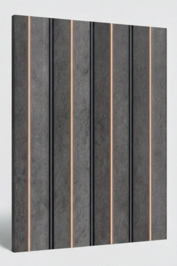 Luxurious charcoal grey premium wooden louver panel featuring fluted texture with gold & black linear veining design in matt finish, perfect for modern interiors.