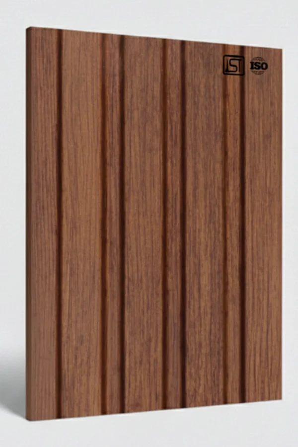 8121 | Natural Dark Brown Teakwood Matt Finish Fluted Wooden Louver Panel