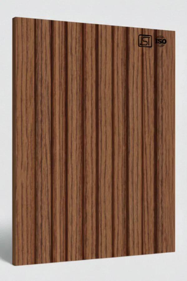 Luxurious dark brown premium wooden louver panel featuring fluted texture with linear design in matt finish, perfect for modern interiors.