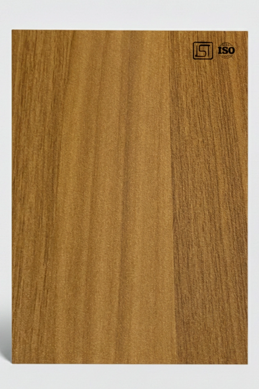 Luxurious golden teak liner laminate featuring smooth natural wooden texture and a silky matt finish, perfect for inner surfaces.