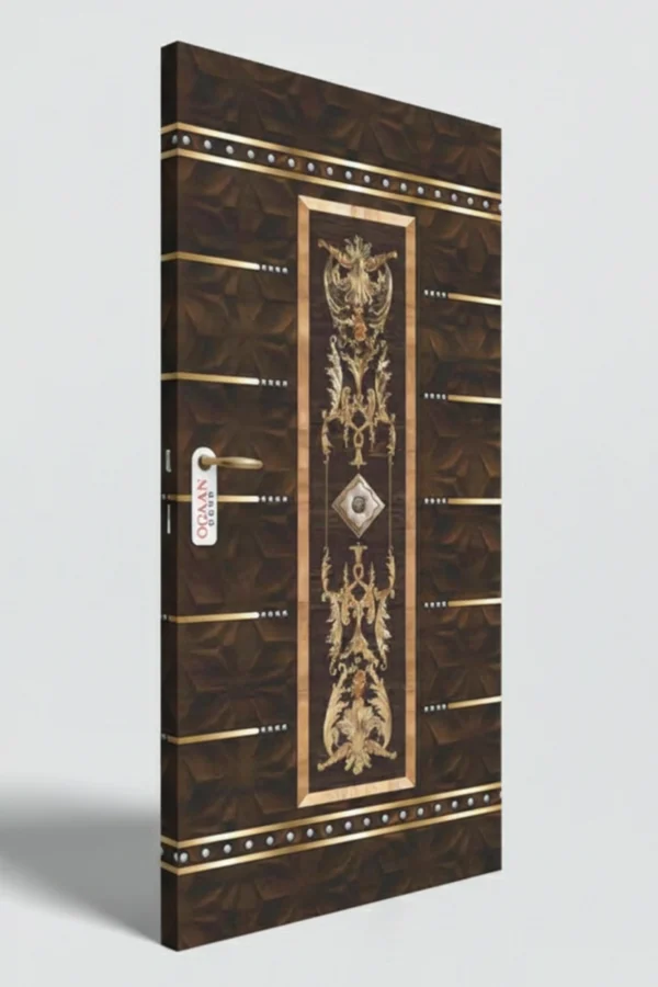 MDG 19 | Dark Brown Matte Finish Wooden Gold Metallic Digital Door Skin Laminate