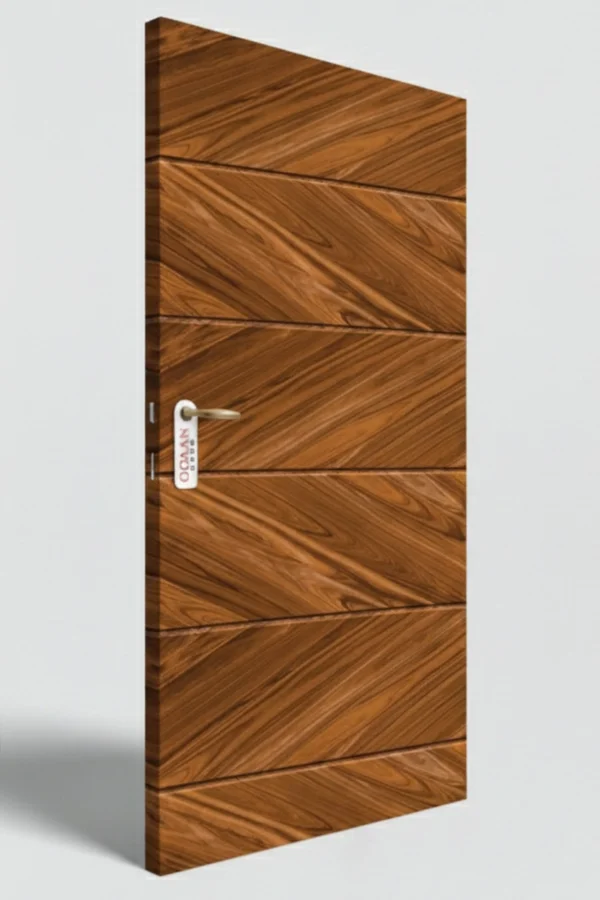 Luxurious natural teakwood colored premium door skin laminate featuring smooth natural looking wooden texture in matte finish, perfect for modern interiors.
