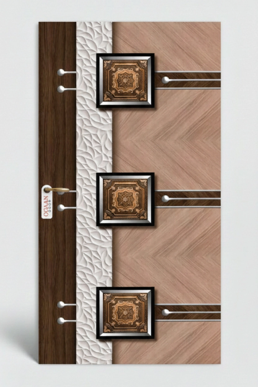 Luxurious dark walnut premium door skin laminate featuring a smooth wooden texture with unique printed design in a matte finish, perfect for modern interiors.