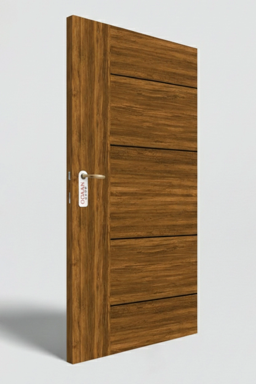 Luxurious chestnut premium door skin laminate featuring a smooth wooden texture in a matte finish, perfect for modern interiors.